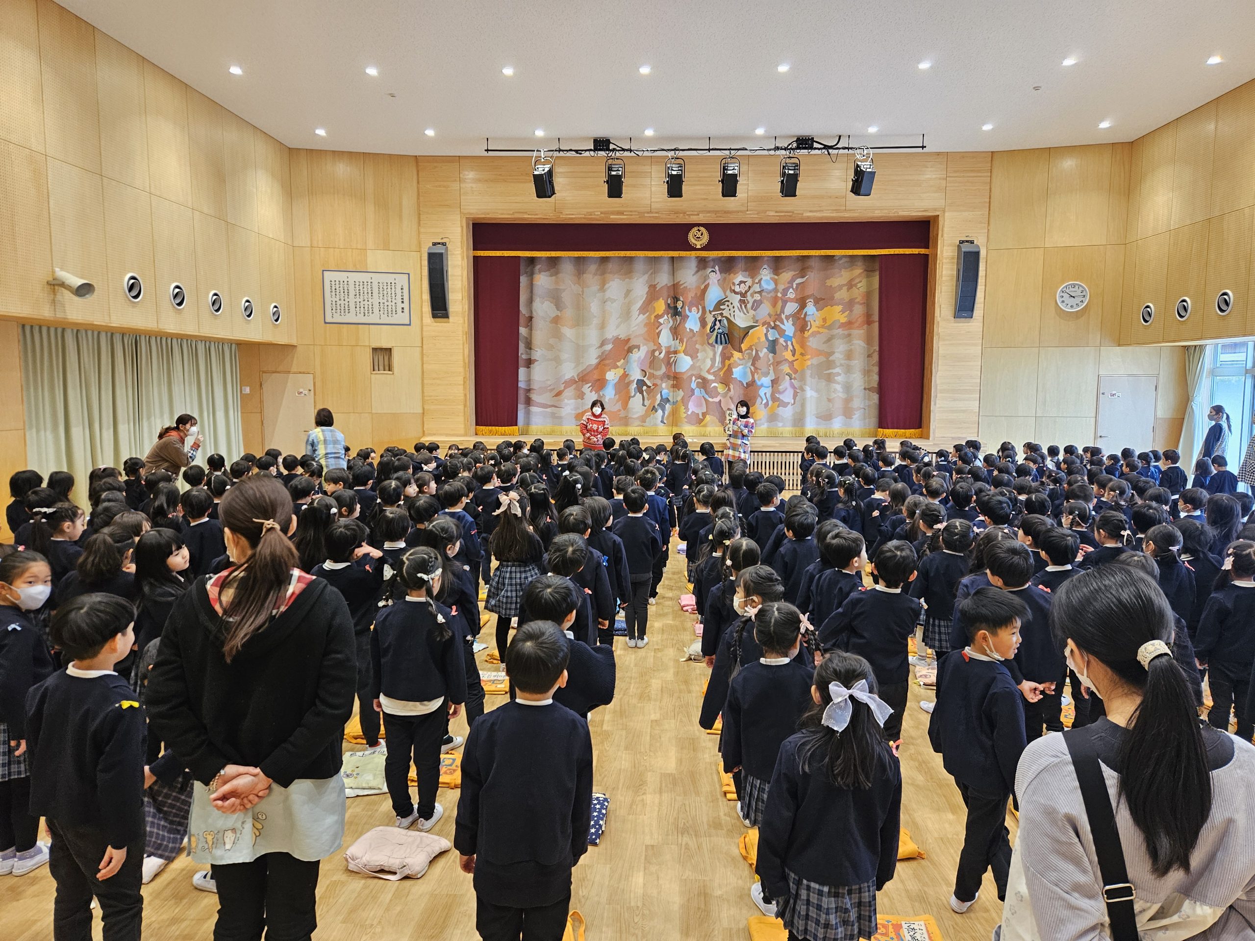 始業式(全学年) あけましておめでとうございます。 今日から3学期が始まりました!「おはよう!」と元気な声が園に戻ってきて、久しぶりに、にぎやかな朝となりました。 3学期はあっという間ですが、友達とたくさん笑って、たくさん遊んで、毎日を大切に過ごしていきたいです。 今年もどうぞよろしくお願いします。