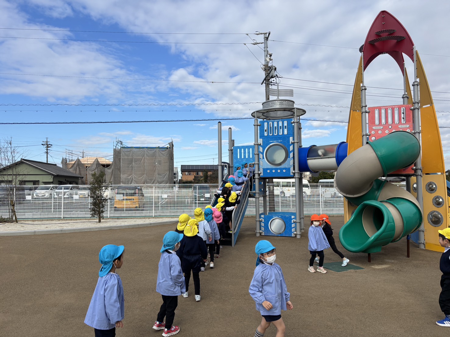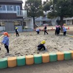 新しい園庭のお散歩をしました (年中) 新しく完成した園庭へお散歩へ!どんな草木があるか散策した後、遊具の安全な使い方の約束をしました。 そして、待ちに待った自由遊びタイム!友達を誘って遊具や砂場で思いきり遊んで楽しい時間を過ごしました!